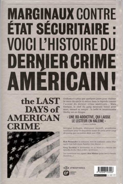 Graham n'a plus que quelques jours pour réaliser le casse du siècle et entrer dans la légende comme l'auteur du dernier crime américain... La tension monte, et des secrets commencent à se révéler... Enrique, le chef du gang mexicain que Graham avait laissé pour mort entend bien se venger ! Quel meilleur moyen que de kidnapper la belle et insaisissable Shelby ? Dans sa course contre la montre, Graham trouvera-t-il le temps de la secourir ? Intrigue brillante, dialogues violents et incisifs, graphisme époustouflant pour cette série en trois épisodes.