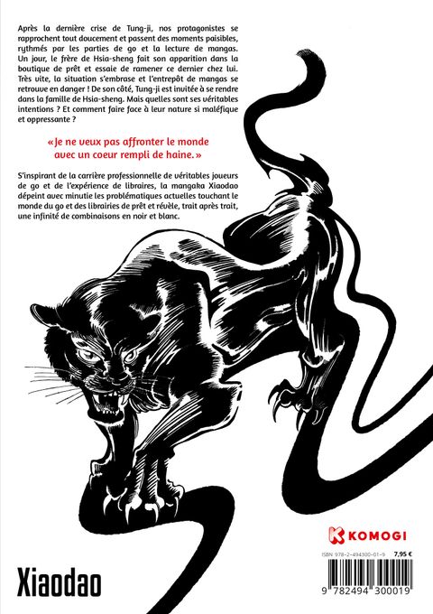 Après la dernière crise de Tung-ji, nos protagonistes se rapprochent tout doucement et passent des moments paisibles, rythmés par les parties de go et la lecture de mangas. Un jour, le frère de Hsia-sheng fait son apparition dans la boutique de prêt et essaie de ramener ce dernier chez lui. Très vite, la situation s'embrase et l'entrepôt de mangas se retrouve en danger ! De son côté, Tung-ji est invitée à se rendre dans la famille de Hsia-sheng. Mais quelles sont ses véritables intentions ? Et comment faire face à leur nature si maléfique et oppressante ? « Je ne veux pas affronter le monde avec un cÅur rempli de haine. » S'inspirant de la carrière professionnelle de véritables joueurs de go et de l'expérience de libraires, la mangaka Xiaodao dépeint avec minutie les problématiques actuelles touchant le monde du go et des librairies de prêt et révèle, trait après trait, une infinité de combinaisons en noir et blanc.