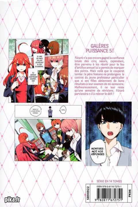 Fûtarô n'a pas encore gagné la confiance totale des cinq soeurs, cependant, être parvenu à les réunir pour le feu d'artifice annuel lui a permis de marquer des points. Mais voilà que le couperet tombe : le père Nakano ne prolongera le contrat du jeune professeur particulier que si ses filles obtiennent de bons résultats à leur examen de mi-semestre. Malheureusement, il ne leur reste qu'une semaine de révisions. Fûtarô parviendra-t-il à relever le défi ?