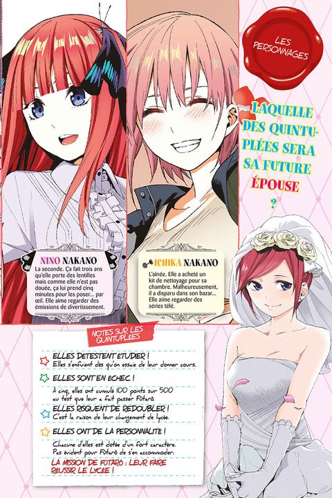 Alors que les révisions approchent, l'ambiance se tend entre les 5 sœurs, et Itsuki et Nino se retrouvent à quitter la maison, dans une ambiance tendue. Ni l'une ni l'autre ne semble prête à bouger de sa position, ce qui complique bien la tache de Uesugi, qui se retrouve à (...) Voir le commentaire