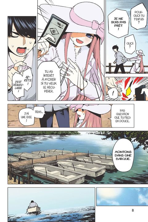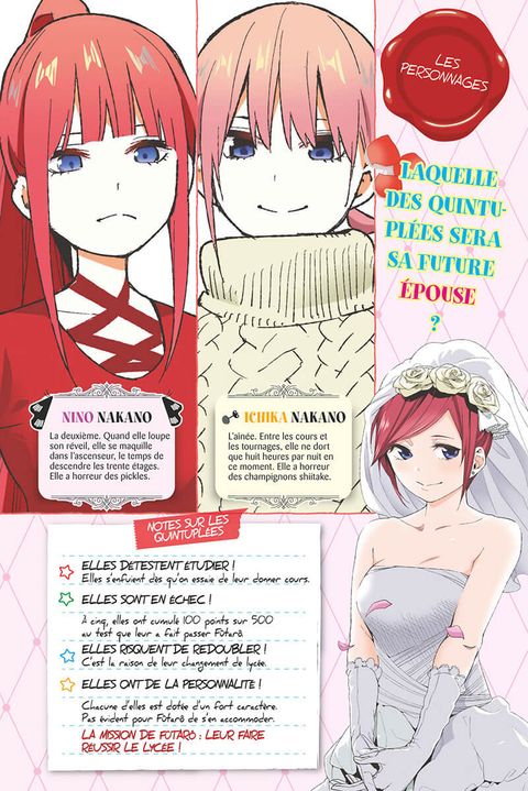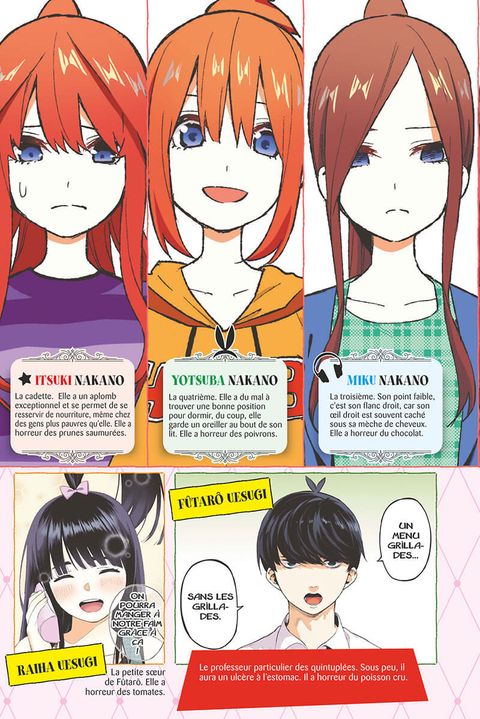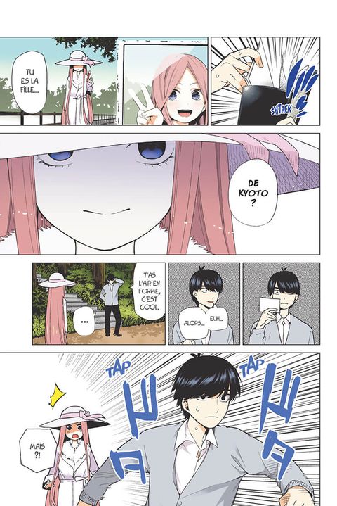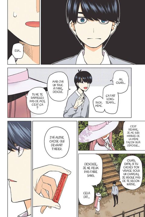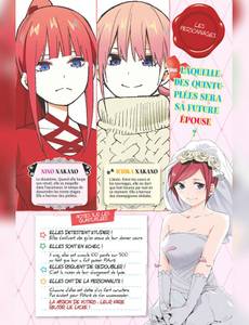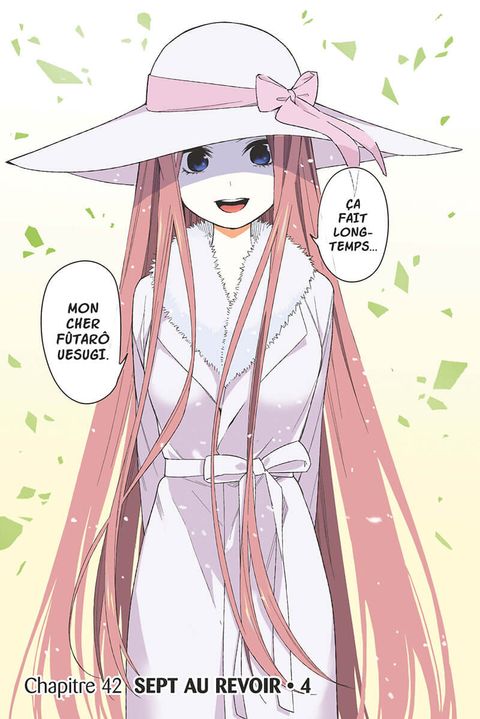Alors que les examens de fin de semestre approchent à grands pas, Nino et Itsuki se sont violemment disputées et ont chacune quitté la maison. Yotsuba, quant à elle, se laisse accaparer par le club d’athlétisme. Pas facile pour Fûtaro d’honorer ses engagements auprès du père Nakano quand trois élèves sur cinq manquent à l’appel ! Et comble de malchance, c’est le moment que choisit la petite fille de la photo pour réapparaître dans sa vie !