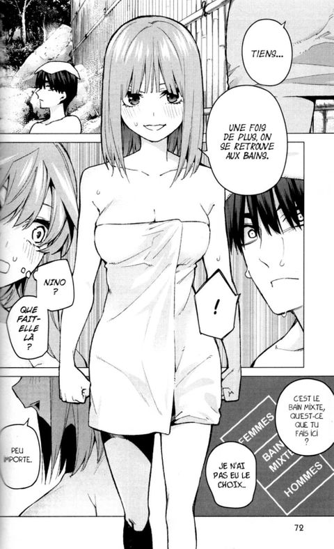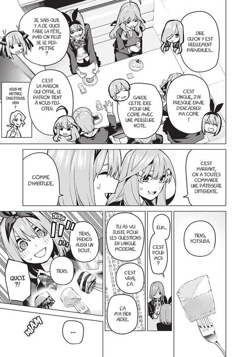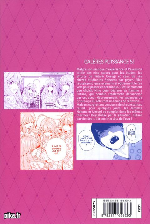 Alors qu'il pensait être en vacances loin des quintuplées, quelle surprise pour Futaro de les retrouver à l'auberge de leur papy! Miku, Nino et même Ichika à sa manière passent à l'offensive, et je ne comprends pas comment Futaro peut rester aussi impassible face aux adorables frangines. Aucune ne se démarque (...) Voir le commentaire