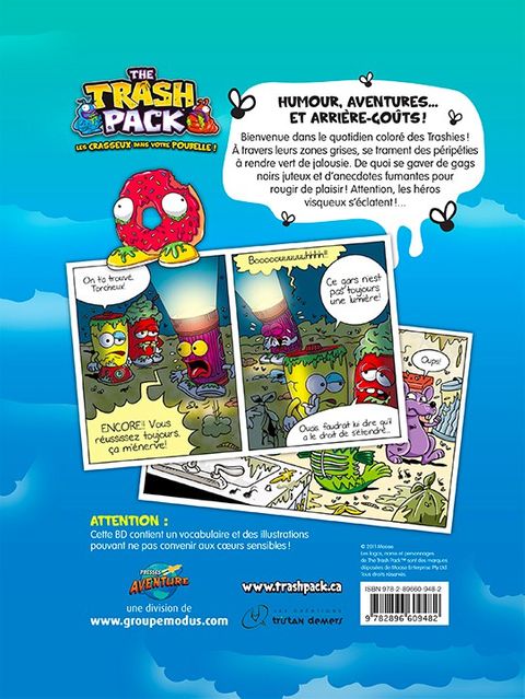 Les célèbres personnages The Trash Pack adaptés en BD ! C'est sale et puant autour de vous? Alors vous êtes bien dans la ville Trash Pack! Autrefois une ville balnéaire en plein essor, ce lieu est aujourd'hui envahi par des créatures répugnantes... Retrouvez les personnages « déchets » de la marque internationale The Trash Pack dans de courtes histoires, tenant sur une planche, conçues pour plaire aux garçons de 5 à 8 ans.