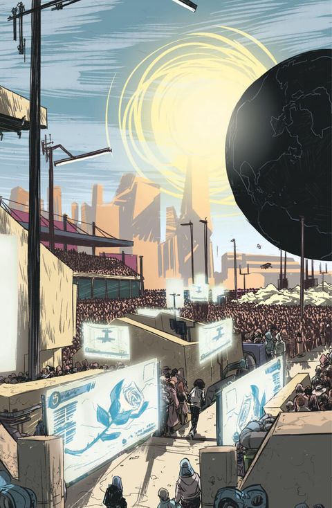2770, Mars Nathan Bright est un présentateur météo cool. Il aime les nouilles et aimerait voir sa relation avec Amanda progresser. Quand soudain des chasseurs de prime l’attaquent. —————— Je n’en dirais pas plus sur le pitch pour ne pas spoiler car un des grands plaisirs de ce récit est la folie générale (...) Voir le commentaire