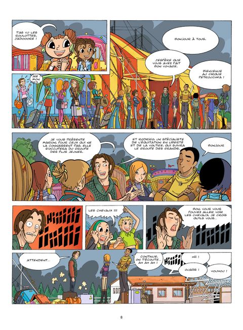 Pour les vacances de Pâques, Théa, Pénélope et toute la bande participent à un stage. Au programme : équitation en liberté pour les plus grands, carrousel pour les plus jeunes avec comme objectif de présenter un spectacle à la fin du séjour ! Mais la colo c'est aussi dormir (et surtout ne pas dormir) dans une roulotte, manger autour d'un feu, jouer à action ou vérité, découvrir l'amour... Alors pas facile de rester concentrées sur l'équitation pourtant, en cas de doute ou de petit chagrin, le cheval reste le meilleur des confidents. Avec Théa, cavalière, les jeunes lectrices et lecteurs ont enfin une série de BD qui raconte la vie d'un centre équestre et la relation fascinante entre l'humain et le cheval !