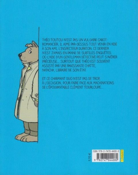 Théo Toutou est romancier. Une occupation qui lui permet de passer du temps auprès de son amie Natacha, ravissante chatte libraire de son état. Mais Théo trouve son inspiration dans les affaires au sujet desquelles l'inspecteur Duraton ne manque jamais de lui demander de l'aide... En effet, ce détective amateur a l'oeil pour repérer le moindre indice, et n'hésite pas à se lancer dans la mêlée pour secourir les plus faibles. Même l'ignoble Clément Tourloupe, cambrioleur aussi brillant qu'impénitent, ne lui fait pas peur !