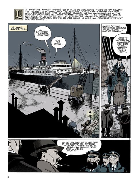 Novembre 1932. Théodore Poussin est au Havre. Il embarque en tant que commissaire de bord sur le Cap Padaran, en partance pour l'Extrême-Orient. Sur le quai, un tueur en série rôde. Se pourrait-il qu'il se soit caché à bord parmi les passagers, une troupe de théâtre de boulevard qui s'est fait une spécialité des mises en scène sanguinolentes ? Théodore en est persuadé, après avoir reconnu parmi eux une vieille connaissance, Barthélemy Novembre, en qui il n'a pas du tout confiance.