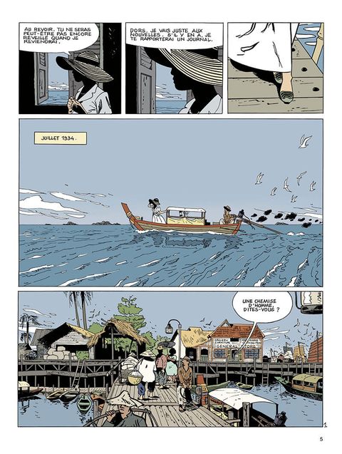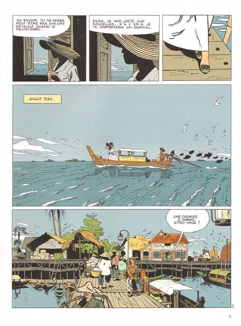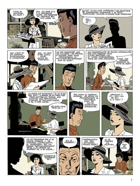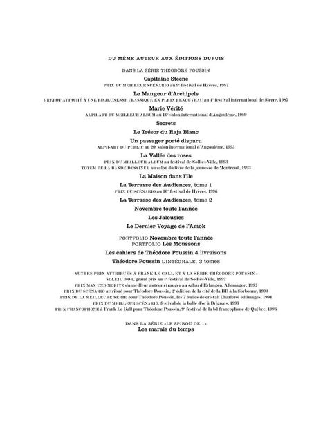 Personnage emblématique du catalogue Dupuis aux premières heures de la collection Repérages, Théodore Poussin navigue sur les mers de Chine et d'ailleurs depuis sa première aventure dans le journal Spirou en 1984. Gageons qu'au moment précis où il accepta de s'embarquer sur le Cap Padaran ce 2 janvier 1928 pour voguer vers la légendaire et lointaine Indochine, le jeune employé de bureau aussi réservé que maladroit ne pouvait imaginer l'incroyable destin et les dangers qui l'attendaient en Orient. Près de quarante ans plus tard et son retour en grandes pompes à bord de l'Amok pour son dernier voyage, notre intrépide héros se retrouve aujourd'hui pris entre les feux croisés des autorités de Singapour qui détiennent son équipage et l'armée britannique qui veut lui mettre le grappin dessus au motif de ses actes de piraterie. Réfugié chez la belle Aro Satoe, il tente d'échapper aux forces de la perfide Albion et s'enfonce dans les méandres labyrinthiques de l'île mystérieuse. Entre grande aventure, voyage introspectif, bilan d'une vie pétrie de moult rebondissements et un incroyable coup de théâtre au terme de ce nouvel album, Frank Le Gall nous livre ici l'un des plus beaux et dépaysants récits de son attachant héros.