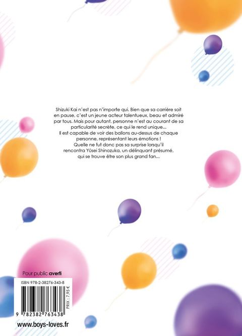 Shizuki Kai n'est pas n'importe qui. Bien que sa carrière soit en pause, c'est un jeune acteur talentueux, beau et admiré par tous. Mais pour autant, personne n'est au courant de sa particularité secrète, ce qui le rend unique... Il est capable de voir des ballons au-dessus de chaque personne, représentant leurs émotions ! Quelle ne fut donc pas sa surprise lorsqu'il rencontra Yûsei Shinozuka, un délinquant présumé, qui se trouve être son plus grand fan...