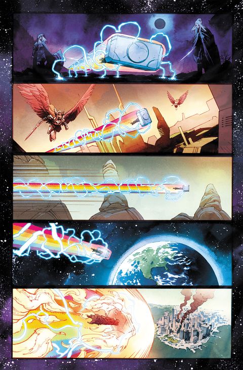 Thor est désormais le Roi d'Asgard. Mais ce quotidien fait d'audiences solennelles et de réunions longuettes l'ennuie. C'est sans compter sur l'arrivée d'un Galactus gravement blessé qui le prévient de l'arrivée d'un danger imminent et de Mjolnir qui commence à agir étrangement.