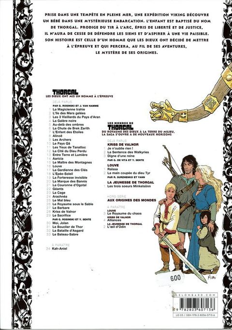 Le tome 13, marquant la fin du cycle du pays de Qâ, se distingue comme un excellent opus de Thorgal, intensifiant le désir de poursuivre l'épopée. Un scénario remarquable et des personnages à la hauteur de leur réputation contribuent à son succès. L'intrigue souligne la complexité du destin de Jolan, déchiré (...) Voir le commentaire