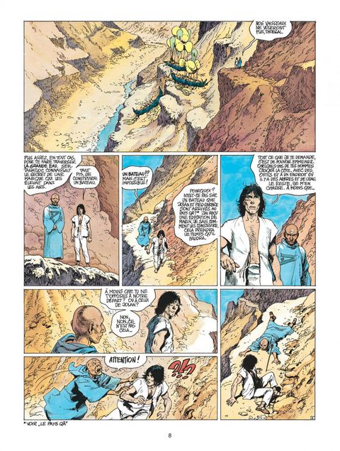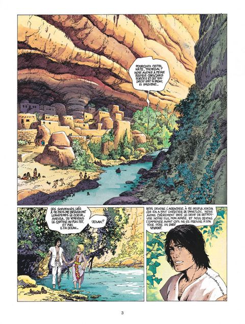 Bon Tome, suite et fin de l'épopée au pays Qâ. Les principaux enjeux sont passés, et nos Héros rentre chez eux. L'histoire manque de tension, d'importance. Les dessins et les couleurs sont toujours belles, la clarté, les tons blanc et jaune clair représente très bien le désert, mais j'ai (...) Voir le commentaire