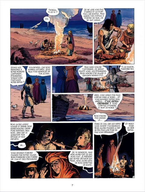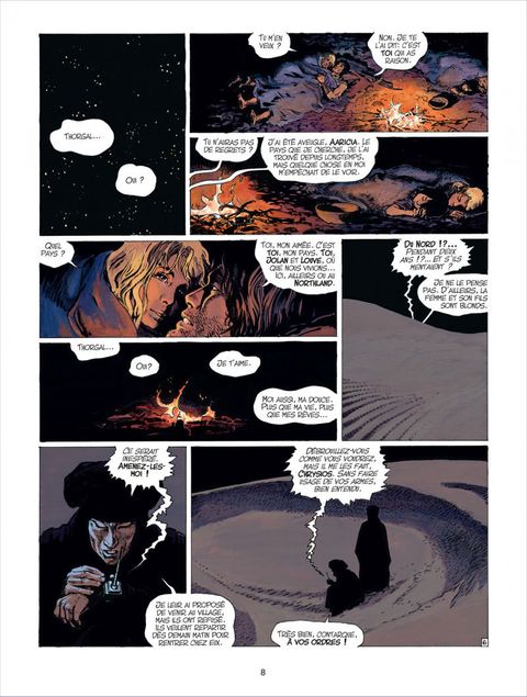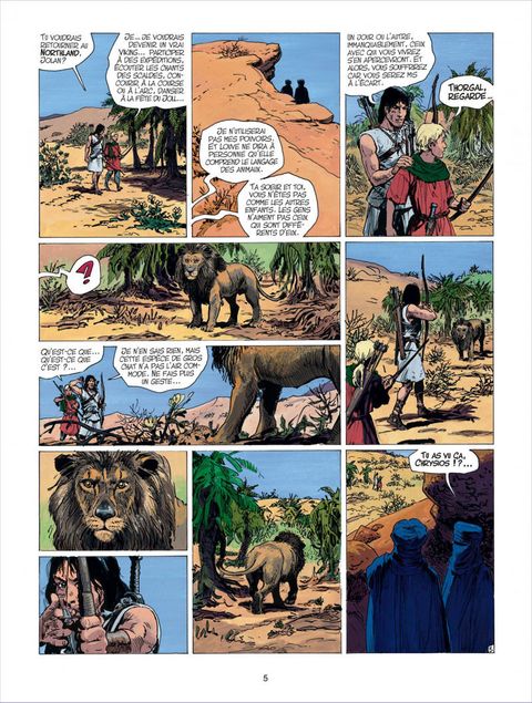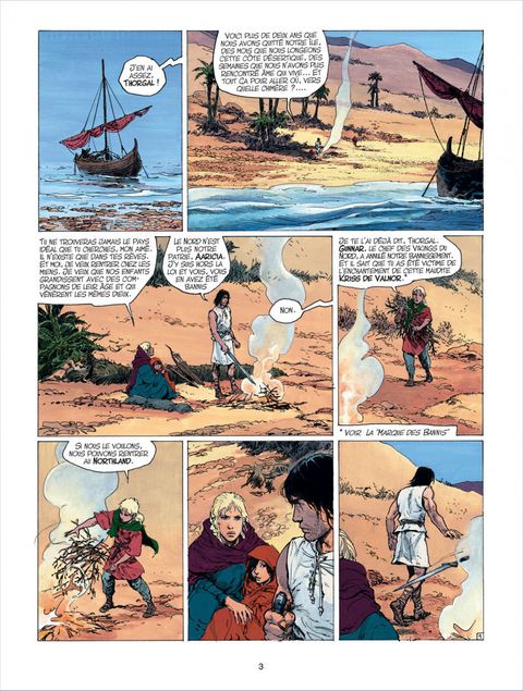 Cet album apporte des éclaircissements inédits sur les origines de l'enfant des étoiles, mais ces révélations annoncent un regain de tumultes dans le destin de Thorgal et des siens... Poursuivant leur voyage vers le sud, Thorgal et sa famille rencontrent les membres d’une expédition, installés dans le désert. D’abord amicaux, les hommes du désert empêchent les Aegirsson de poursuivre leur route. Le trident imprimé sur leurs poitrines rappelle à Thorgal et Aaricia les démons du passé…