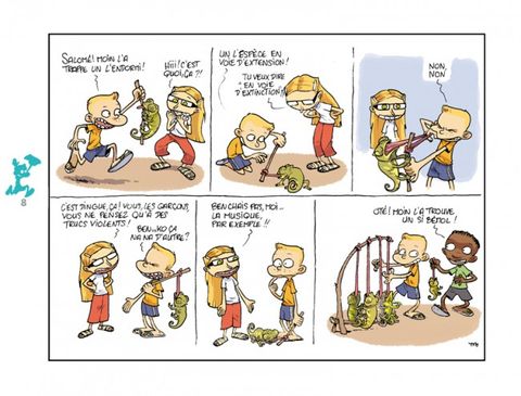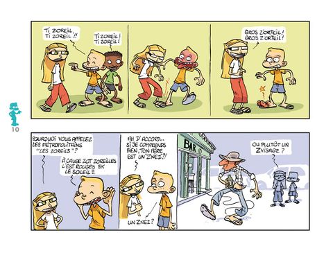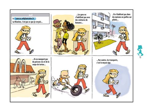 Salomé emménage à la Réunion avec son papa gendarme et sa gentille maman. La Réunion c'est aussi la France, mais c'est pas pareil ! Tout le monde parle un français un peu bizarre : c'est le créole. Et puis les métropolitains sont appelés les zoreilles : pas très agréable ! La nourriture fait transpirer tellement elle pique. Pour s'adapter à tout ça, il faut absolument devenir copain avec Tiburce, petit garçon du cru, intrépide, un peu roublard et adepte du "pneu à bâtons".Une BD réalisée par Téhem, qui y mêle son humour dévastateur et ses souvenirs d'enfance à la Réunion. Pour découvrir la vie de là-bas et s'évader le temps d'une BD sur une île paradisiaque !