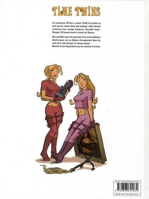 Cynthia et Cybille sont à peine remises des Années Folles que, déjà, les voilà reparties à la chasse aux pièces détachées à travers les âges. Le prochain morceau de la machine à remonter le temps, seule capable de les renvoyer chez elles, a été localisé à Pompéi... le 22 août 79 ! Soit deux jours avant la célèbre éruption du Vésuve... Une chose est certaine: Pompéi n'était prête ni pour supporter le volcan ni pour recevoir nos deux jumelles !