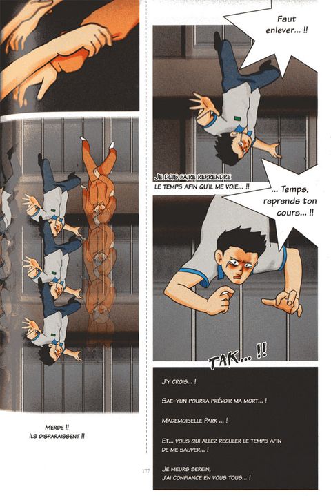 La série de suicides se poursuit dans le lycée de Ja-Ky, la chaman, et même l'équipe qu'elle a constituée - Sae-Young aux rêves prémonitoires, Young-Tak qui peut stopper le temps, l'inspecteur Psychopompe et l'homme capable de revenir dix secondes en arrière - ne semble pas en mesure de lutter contre ce phénomène surnaturel. La tragédie prédite serait-elle inéluctable ? L'intrigue fantastique, qui gagne encore en noirceur dans ce volume, annonce un final de plus éprouvants, tant l'auteur semble s'amuser à malmener et même carrément éliminer ses héros.