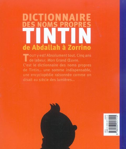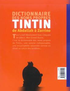 Tout y est ! absolument tout. Cinq ans de labeur. mon grand oeuvre. c'est le dictionnaire des noms propres de tintin, une somme indispensable, une encyclopédie raisonnée comme on disait au siècle des lumières. 1ère édition en 1992. Réédition en 2003. Même ISBN mais couverture differente