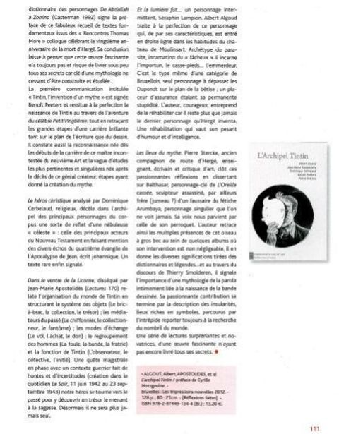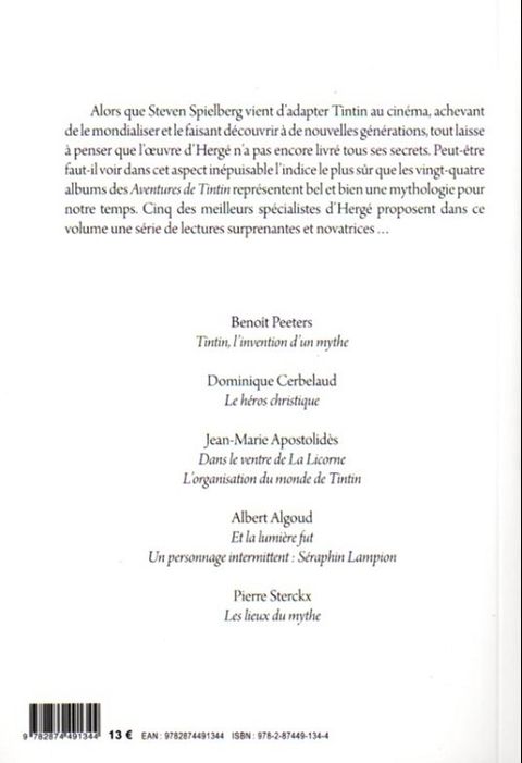 Alors que Steven Spielberg vient d'adapter Tintin au cinéma, achevant de le mondialiser et le faisant découvrir à de nouvelles générations, tout laisse à penser que l'oeuvre d'Hergé n'a pas encore livré tous ses secrets. Peut-être faut-il voir dans cet aspect inépuisable l'indice le plus sûr que les vingt-quatre albums des Aventures de Tintin représentent bel et bien une mythologie pour notre temps. Cinq des meilleurs spécialistes d'Hergé proposent dans ce volume une série de lectures surprenantes et novatrices...