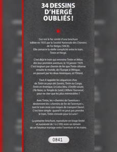Ceci est un fac-similé d'une brochure éditée en 1935 par la Société Nationale des Chemins de Fer Belges (SNCB).Elle consacre la réelle complicité entre le train, Tintin et Hergé.C'est déjà le train qui emmène Tintin et Milou dès leur première aventure, le 10 janvier 1929.C'est toujours par chemin de fer que Tintin sillonne ensuite le monde, de l'Europe à l'Afrique, en passant par les deux Amériques et l'Orient.Faut-il rappeler les séquences choc de Tintin au pays des Soviets, Tintin au Congo, Tintin en Amérique, Le Lotus bleu, L'Oreille cassée, L'Île Noire, Le Temple du Soleil, L'Affaire Tournesol, pour ne citer que les plus mémorables ?Avec Tintin, les « chemins de l'aventure » deviennent les « chemins de fer de l'aventure », tant le train reste son moyen de transport favori.C'est bien simple : quand il ne peut pas prendre le train, Tintin s'envole pour la Lune !