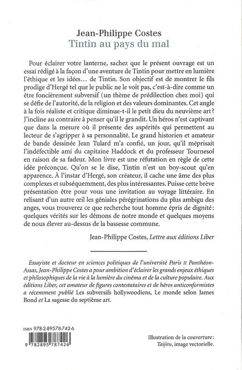 Que deviendrait Tintin, chevalier sans peur et sans reproche de la bande dessinée, si un album caché du grand Hergé le peignait sous les couleurs compromettantes d'un personnage hanté par de multiples démons ? Un héros encore plus passionnant que celui dont nous connaissons tous les aventures ! Dans un texte à la croisée de l'essai et du neuvième art, Jean-Philippe Coste vous propose de découvrir les idées insoupçonnées d'un contestataire grimé en bien-pensant qui, à mots subtilement couverts, renverse les hiérarchies traditionnelles et les valeurs dominantes. Politique, religion, science, féminité, pouvoir, autorité, races, aucun tabou ne sera épargné par la verve critique du plus roué - et du plus mal connu - des reporters vedettes.