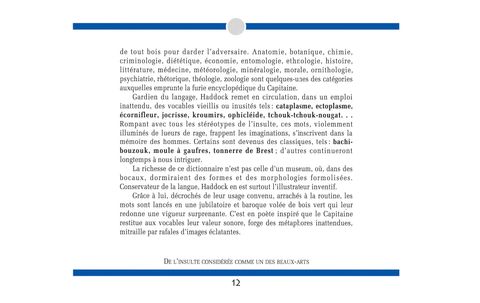 Puisse le lecteur trouver ici de quoi insulter ses contemporains en s'instruisant.Qu'élargissant à son tour les limites de la langue, il fasse preuve de la féroce fantaisie du Capitaine.Albert Algoud