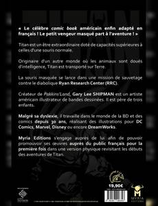 « Le célèbre comic américain, enfin adapté en français ! Le petit vengeur masqué part à l'aventure ! » Titan est un être extraordinaire doté de pouvoirs supérieurs à ceux d'une souris normale. Titan est originaire d'un autre monde où les animaux sont dotés d’intelligence. Après avoir déclenché une explosion dans son monde, Titan est transporté dans le monde des hommes où la souris masquée va se lancer dans une mission de sauvetage contre le diabolique Ryan Research Center (RRC). ♦ AUTEUR / ILLUSTRATEUR : Gary SHIPMAN ♦ GENRE : Aventure, Drame ♦ PRIX : 24,90€ TTC ♦ ISBN (livre physique) : 9782487006348 ♦ NOMBRE DE PAGES : 184 pages ♦ FORMAT : Broché, Couverture Cartonnée, Dorure et Vernis Sélectif 3D ♦ DIMENSIONS (hauteur x largeur x épaisseur) : 21 cm x 14 cm x 1,5 cm ♦ DATE DE SORTIE : Novembre 2023 ♦ ACCESSIBLE À PARTIR DE : 12 ans MYRIA EDITIONS © 2023 — Titan : Mouse of Might #1