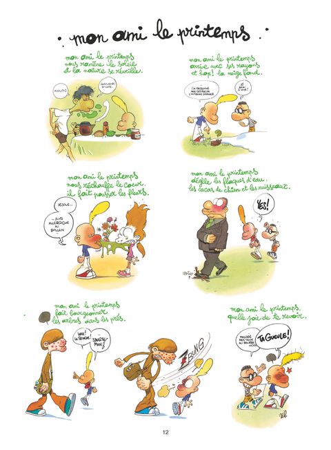 Traversez l'année en humour avec Titeuf !Et oui, en plus d'être un p'tit gars turbulent qui maitrise sur le bout des doigts la loi du préau, Titeuf est généreux ! Il vous a donc concocté avec amour un album spécial. Son incurable curiosité aidant, il a décidé de suivre les saisons pour ponctuer les journées de tonnes de bêtises appropriées ! Entre minis gags et mégas illustrations, Titeuf vous dévoile tout ! De ses impressions sur la rude rentrée des classes au temps béni des vacances avec soleil et glaces, sans oublier les horribles moments d'hiver glaçants et les bourgeons printaniers des arbres et des ados ! Pour entrer dans le printemps avec bonne humeur, le beau-livre Petite poésie des saisons reparaît dans le format de la collection Titeuf !