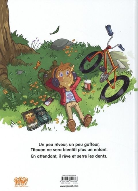 Des vacances pas comme les autres. Titouan a retrouvé son papa et embarque dans son van pour les vacances. Au programme des réjouissances : plage, surf et... initiation à la vie en communauté au sein d'un groupe éco-révolutionnaire. Alors que Titouan n'a toujours pas complétement digéré la séparation de ses parents, le voilà face à un père blagueur, survolté, mais un peu perdu quand il s'agit de transmettre des valeurs à son fils. Les deux garçons vont devoir s'apprivoiser et réapprendre à se connaitre. Heureusement, pendant son séjour, Titouan fait aussi la rencontre de Fabien et Loulou. Déjà accoutumés à la vie en communauté, ses deux nouveaux amis lui font découvrir les merveilles alentours et notamment un vieux bateau accessible uniquement à marée basse où ils établiront leur QG. Du rire, des sentiments et de l'action pour ce deuxième tome de Titouan qui confirme son statut de série d'apprentissage euphorisante. Titouan est une création des auteurs de la série-concept Les Géants.