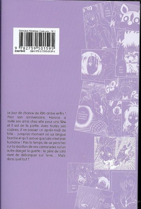 Le jour de chance de Rito arrive enfin ! Pour son anniversaire, Haruna a invité ses amis chez elle pour une fête et il en fait bien sûr partie. Avec toutes ses copines, il va passer un après-midi de folie... jusqu'au moment où sa langue fourche et qu'il avoue que Lala n'est pas humaine ! Pas le temps de se pencher sur la réaction de ses camarades qu'un autre danger le guette : le père de Lala vient de débarquer sur Terre... Mais dans quel but ?