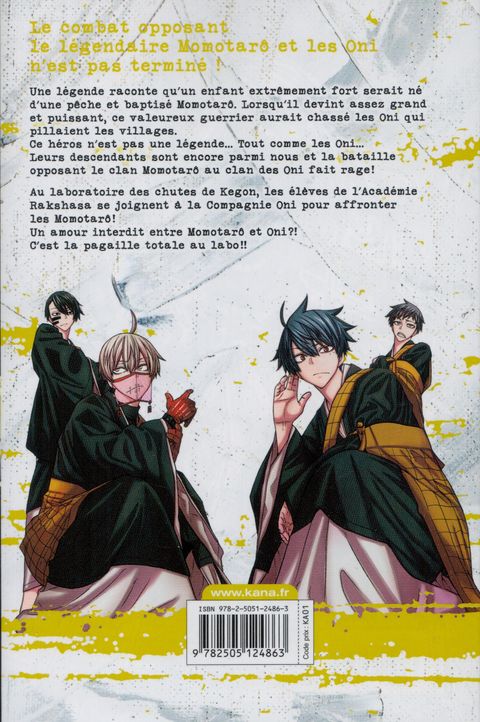 Une légende raconte qu'un enfant extrêmement fort serait né d'une pêche et baptisé Momotarô. Lorsqu'il devint assez grand et puissant, ce valeureux guerrier aurait chassé les Oni qui pillaient les villages. Ce héros n'est pas une légende... Tout comme les Oni... Leurs descendants sont encore parmi nous et la bataille opposant le clan Momotarô au clan des Oni fait rage ! Au laboratoire des chutes de Kegon, les élèves de l'Académie Rakshasa se joignent à la Compagnie Oni pour affronter les Momotarô ! Un amour interdit entre Momotarô et Oni ?! C'est la pagaille totale au labo !!