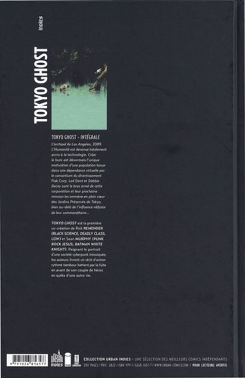Une histoire accrocheuse et torturée comme je les aime. Tokyo Ghost est un « beau » livre, le dessin est complexe et soigné, les problématiques sociétales abordées sont pertinentes même si on a pu en grossir les traits pour les besoins du scénario. Personnellement j’ai adoré, pas comme livre de chevet que (...) Voir le commentaire