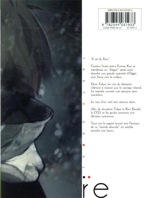 "Il est là, Ken". Comme l'avait prévu Furuta, Ken se transforme en "dragon" après avoir absorbé une grande quantité d'Oggai, puis fonce vers la surface. Dans Tokyo, les cris de désespoir s'élèvent à mesure que le carnage s'étend. La capitale connaît une panique sans précédent. La voix d'un vieil ami résonne alors. Afin de récupérer Tokyo et Ken Kaneki, le CCG et les goules prennent une décision commune. Tous ont le regard tourné vers l'horizon de ce "monde absurde" où semble poindre une lueur...