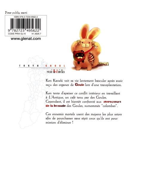 Ken Kaneki voit sa vie lentement basculer après avoir reçu des organes de Goule lors d’une transplantation. Ken tente d’apaiser ce conflit intérieur en travaillant à L’Antik, un café tenu par des Goules. Cependant, il est bientôt confronté aux inspecteurs de la brigade des Goules, surnommés “colombes”. Ces ennemis mortels usent des moyens les plus retors afin de pourchasser sans répit ceux qu’ils ont pour mission d’éliminer !