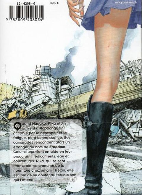 Prise de panique, Nanako s'enfuit en courant. Jin et Rika essaient de la rattraper alors que celle-ci commence à monter les escaliers de la tour de Tokyo. Une fois en haut, ils découvrent que la ville tout entière est ravagée par les flammes. Arrivés à Roppongi, le désespoir et la fatigue ont raison de Jin qui perd connaissance. Nanako reste à ses côtés pendant que Rika s'en va chercher de la nourriture chez un ami. Hélas, celle-ci est loin de se douter du sort terrible qui l'attend. Reconnu pour ses talents artistiques et son immense créativité, Furuya Usamaru a d'abord été peintre et illustrateur avant de se consacrer au manga, sa première passion. Palepoli, La musique de Marie, Plastic Girl. Chacun de ses titres a contribué à sa popularité puisqu'il est aujourd'hui un mangaka fort apprécié du public japonais.