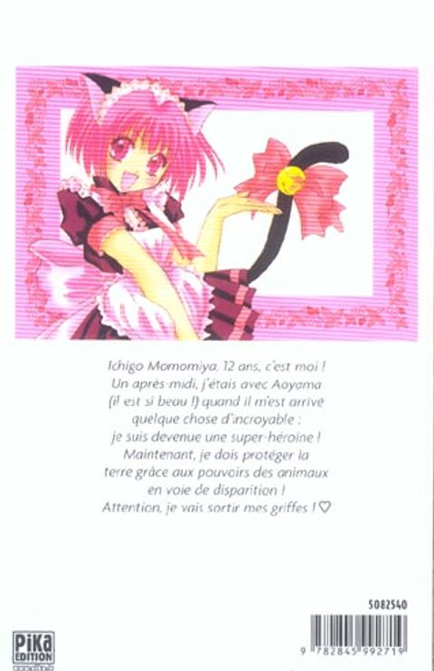 ichigo momomiya, 12 ans, c'est moi ! un après-midi, j'étais avec aoyama (il est si beau !) quand il m'est arrivé quelque chose d'incroyable je suis devenue une super-héroine ! maintenant, je dois protéger la terre grâce aux pouvoirs des animaux en voie de disparition ! attention, je vais sortir mes griffes !