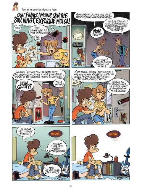Ainsi s'exprime l'ado normalement constitué. À cette caractéristique s'ajoutent quelques claquements de porte théâtraux, des épaules arrondies par la flemme et un regard hébété par la carence en légumes. L'ado utilise par ailleurs son intelligence de façon désarmante : il pourra être le dernier de la classe, mais le meilleur en bidouille informatique pour retoucher son bulletin scolaire, surfer sur facebouc ou pirater le téléphone portable des copains... Découvrez ou redécouvrez les dures lois de l'adolescence, dans le troisième tome des aventures de Tom et sa famille. C'est tout l'univers des ados d'aujourd'hui qui est croqué avec humour par les auteurs Jim & Rudowski, dans une suite de gags tous plus d'jeuns les uns que les autres !