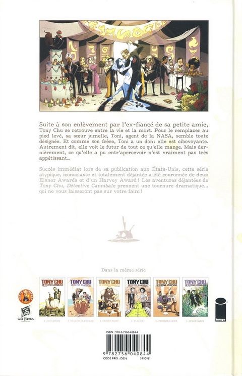 Suite à son enlèvement par l'ex-fiancé de sa petite amie, Tony Chu se retrouve entre la vie et la mort. Pour le remplacer au pied levé, sa soeur jumelle, Toni, agent de la NASA, semble toute désignée. Et comme son frère, Toni a un don : elle est cibovoyante. Autrement dit, elle voit le futur de tout ce qu'elle mange. Mais dernièrement, ce qu'elle a pu entr'apercevoir n'est vraiment pas très appétissant...