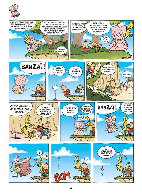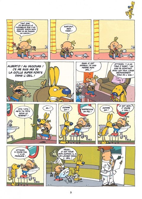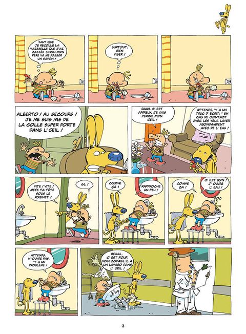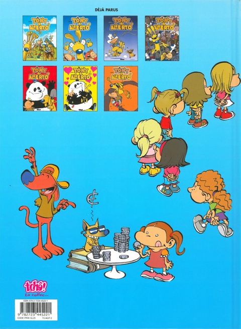 Chez Tony & Alberto, la vie poursuit son cours de manière toujours aussi calme et tranquille : Tony s'enfonce une balle dans les fesses, une brosse à chiottes dans l'oreille, un couteau dans l'estomac, se met de la super-glu dans l'oeil, se fait faire caca dessus par une vache... Bref, que des événements aussi banals que quotidiens... Alberto, de son côté, continue inlassablement de mordre le facteur à chacune de ses visites. Mais le problème, c'est qu'il dévore le courrier de Tony en même temps... Alors Tony n'a d'autre solution que de l'inscrire dans un centre de dressage pour chiens. Et là, Alberto nous la rejoue ambiance « Full Metal Jacket », mais version canine !!! Tony c'est le petit garçon. Alberto c'est son chien. Ils sont copains comme cochons. Et ils sont cochons comme copains ! Leur nouvel album est irrésistible et fourmille de gags tous plus délirants les uns que les autres ! Car, vous l'avez compris, Tony & Alberto sont capables de tout, et surtout du pire...