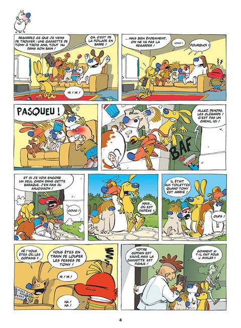 Tony, plus turbulent que jamais, consacre toujours autant d'énergie à se mettre dans des situations qui ne se terminent que très rarement à son avantage et le plus souvent à l'hôpital. C'est fascinant comme un si petit garçon peut être aussi créatif lorsqu'il s'agit de faire quelque chose de débile ! En comparaison, Alberto, son chien, a l'air bien plus calme. Mais on s'aperçoit vite qu'il n'en est rien, et lorsque tous ses copains les chiens viennent le voir, ce n'est pas pour jouer au scrabble. Pour ce sixième album, les petites taupes reviennent de Chine voir leur copain Alberto, accompagnées d'un énorme panda qui s'avère bien encombrant. De son côté, Tony a fort à faire car il doit encore une fois accueillir Dominique, sa correspondante. Pauvre Tony, quand on sait ce qu'il pense des filles !!