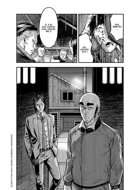Quand on est dans la merde, qui c'est qu'on appelle ?!Hideo a été arrêté par la police pour un crime qu'il n'a pas commis ! À la recherche d'un avocat pour plaider sa cause, il apprend que la dénonciation anonyme viendrait de Mai, aidée de Takeshi Kuwamoto, leader du clan éponyme. Quelle est la véritable raison qui a poussé la lycéenne à approcher notre chauve malchanceux ? Pour le découvrir, Hideo revient sur son séjour en Corée des années plus tôt... Mais où cette enquête va-t-elle bien les conduire ?Découvrez les aventures d'une équipe de choc pas comme les autres dans cette série en 3 tomes scénarisée par Buronson (Hokuto no Ken, Sôten no Ken) et dessinée par Shirô Yoshida !