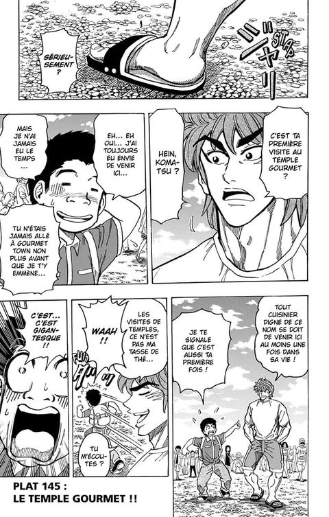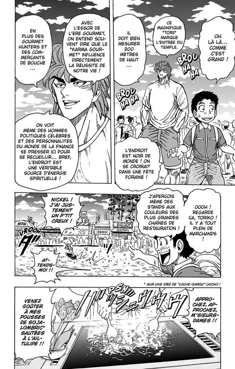 L'aventure de la Pyramide Gourmet a mis en lumière l'existence des Nitros, de dangereuses créatures qui sauraient comment obtenir «GOD», la plus mythique des denrées. Le calvaire enduré pour récolter le Mellow Cola confirme chez Toriko l'idée qu'il n'est pas encore suffisamment puissant pour protéger son partenaire. Il propose donc à Komatsu un programme chargé : le Temple Gourmet, un endroit dédié à la mémoire du légendaire Acacia, suivi de l'île de la Frousse, où l'on cultive les pommes-frousse de bien curieuse façon ! Nos deux acolytes vont y découvrir l'étendue de leur Karma Gourmet...