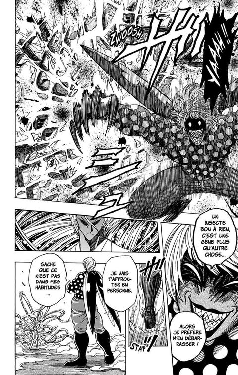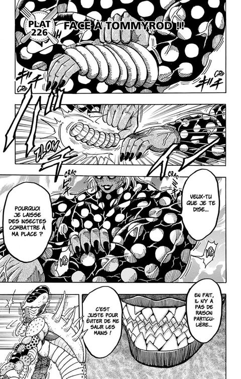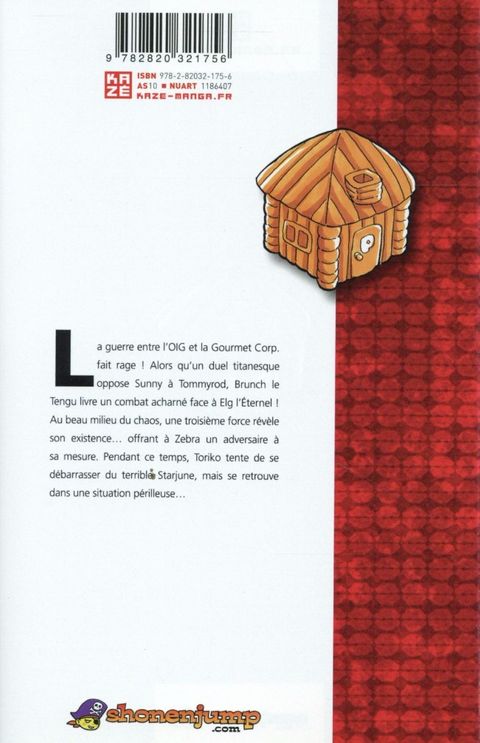 La guerre entre l’OIG et la Gourmet Corp. fait rage ! Tandis qu'un duel titanesque oppose Sunny à Tommyrod, Brunch le Tengu livre un combat acharné face à Elg l'Éternel. Au beau milieu du chaos, une 3ème force révèle son existence, offrant à Zebra un adversaire à sa mesure. Pendant ce temps, Toriko tente de mettre à terre le terrible Starjune, mais se retrouve dans une situation périlleuse…