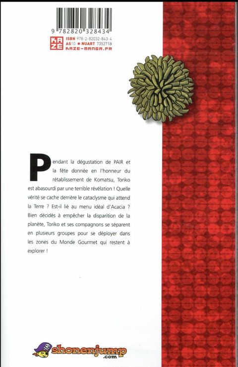 Dans un monde où la gastronomie règne sans partage, les plus grands restaurants rivalisent d'ingéniosité pour offrir les menus les plus succulents ! Mais les meilleurs ingrédients sont souvent rarissimes et très risqués à obtenir... Chargé de mettre la main sur de la viande de galala-gator, le chef cuisiner Komatsu fait la rencontre de la crème des chasseurs de denrées rares : Toriko.