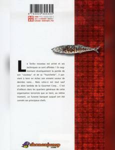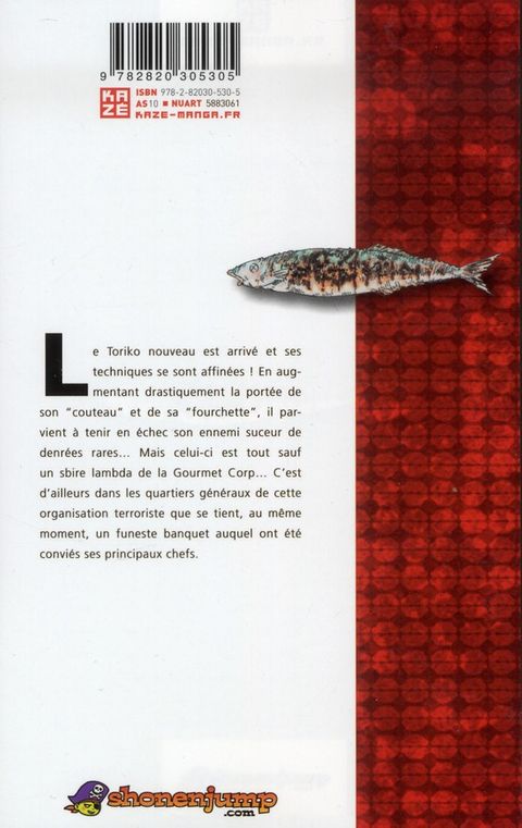 Le Toriko nouveau est arrivé et ses techniques se sont affinées ! En augmentant drastiquement la portée de son “couteau” et de sa “fourchette”, il parvient à tenir en échec son ennemi suceur de denrées rares… Mais celui-ci est tout sauf un sbire lambda de la Gourmet Corp… C’est d’ailleurs dans les quartiers généraux de cette organisation terroriste que se tient, au même moment, un funeste banquet auquel ont été conviés ses principaux chefs.