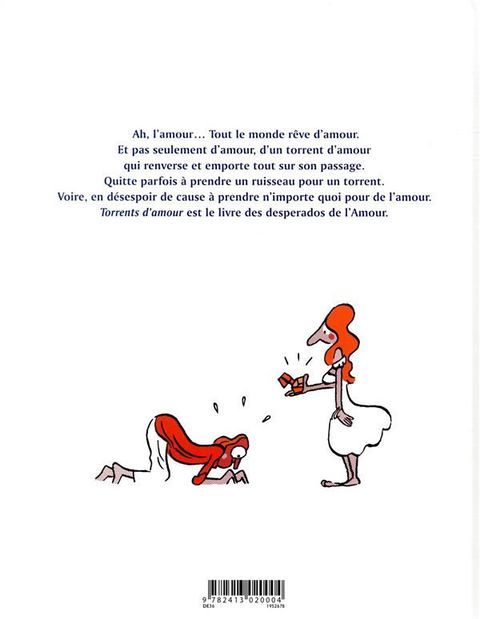 Petit, grand, gros, moche, maigre, femme, homme, riche, pauvre, intelligent ou très bête, tout le monde rêve d'amour. Et même d'un torrent d'amour qui renverse et emporte tout sur son passage. Quitte parfois à prendre un ruisseau pour un torrent. Voire, en désespoir de cause, à prendre n'importe quoi pour de l'amour. Torrents d'amour est le livre des desperados de l'Amour, qui fait enfin rimer amour et humour.