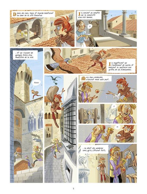 En plein coeur de la Toscane, la ville imaginaire de Castelguelfo et son château sont le terrain de jeu de Rinaldo et sa petite soeur Tosca, 12 ans, véritable garçon manqué, rebelle, casse-cou, agile et débrouillarde. Depuis la mort de leurs parents, ils subsistent grâce à des larcins perpétrés par Tosca, au grand dam de son frère qui espère vivre de sa poésie et de sa musique. Contre toute attente Tosca et Rinaldo se lient d'amitié avec Lucilla, la fille du Duc de Castelguelfo. Quand cette dernière est enlevée, ils vont tout mettre en oeuvre pour aider son père à la libérer des griffes du terrible Gauthier de Brienne, seigneur de Florence....