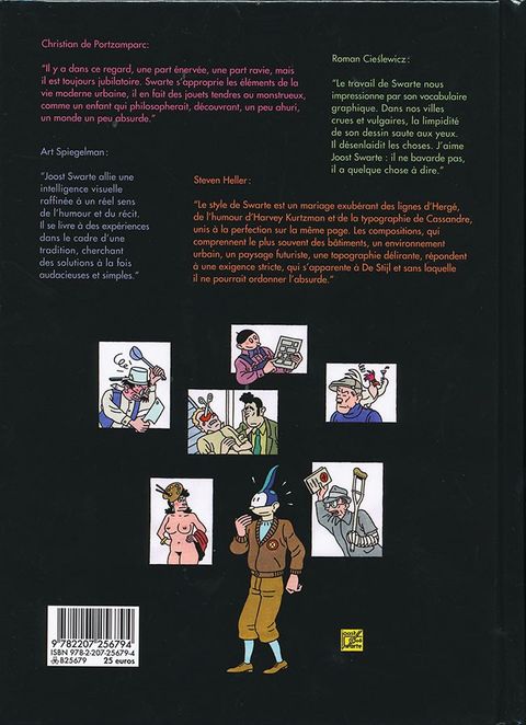 «Joost Swarte allie une intelligence visuelle raffinée à un réel sens de l'humour et du récit. Il se livre à des expériences dans le cadre d'une tradition, cherchant des solutions à la fois audacieuses et simples.» (Art Spiegelman) «Le style de Swarte est un mariage exubérant des lignes d'Hergé, de l'humour d'Harvey Kurtzman et de la typographie de Cassandre, unis à la perfection sur la même page. Les compositions, qui comprennent le plus souvent des bâtiments, un environnement urbain, un paysage futuriste, une topographie délirante, répondent à une exigence stricte, qui s'apparente à De Stijl et sans laquelle il ne pourrait ordonner l'absurde.» (Steven Heller)