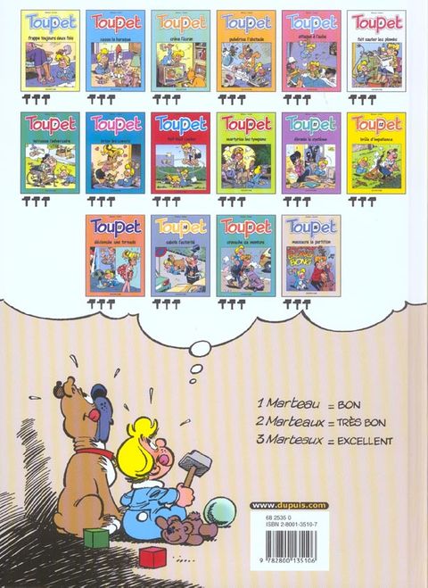 Adorable bébé blond et joufflu, Toupet est surtout une véritable catastrophe sur (quatre) pattes. A grands coups de marteau, il tente les expériences les plus diverses et les plus assourdisantes pour la maisonnée. Avec lui, dur, dur d'être parent.