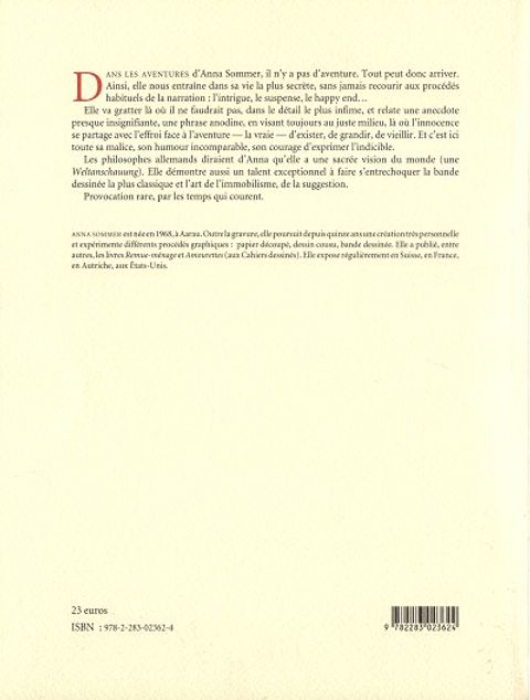Après avoir publié Amourettes en 2002, un recueil de ses premières gravures sur zinc, dans la collection Les Cahiers dessinés, Anna Sommer présente aujourd'hui Tout peut arriver, son autobiographie en bandes dessinées. Sur un ton humoristique et tendre, Anna Sommer révèle les détails intimes et toujours déconcertants de son enfance, de son adolescence et de sa vie professionnelle et conjugale. Elle évoque ses premiers souvenirs dans une famille ordinaire d'un petit village de Suisse alémanique, son premier baiser, ses premières expériences professionnelles, notamment comme modèle dans un cours de dessin académique, et nous dévoile, derrière la façade d'une existence apparemment sans histoire, un monde secret et fantasmatique.