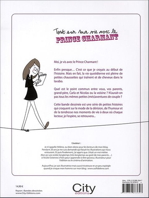 Moi, je vis avec le Prince Charmant ! Enfin presque... C'est ce que je croyais au début de l'histoire. Mais en fait, la vie quotidienne est pleine de petites chaussettes qui traînent et de cheveux dans le lavabo. Quel est le point commun entre vous, vos parents, grand-père, Carla et Nicolas ou la voisine ? N'aurait-on pas tous les mêmes petites (més)aventures de couple ? Cette bande dessinée est une série de petites histoires qui croquent sur le mode de la dérision, de l'humour et de la tendresse nos moments de vie à deux où chaque lecteur, je l'espère, se retrouvera...